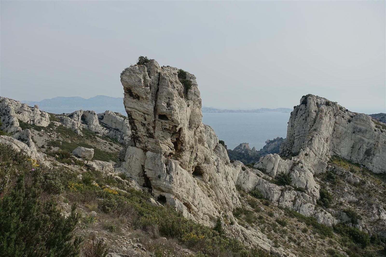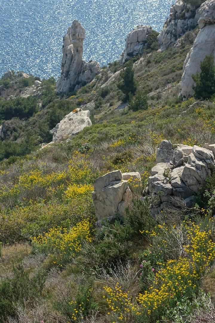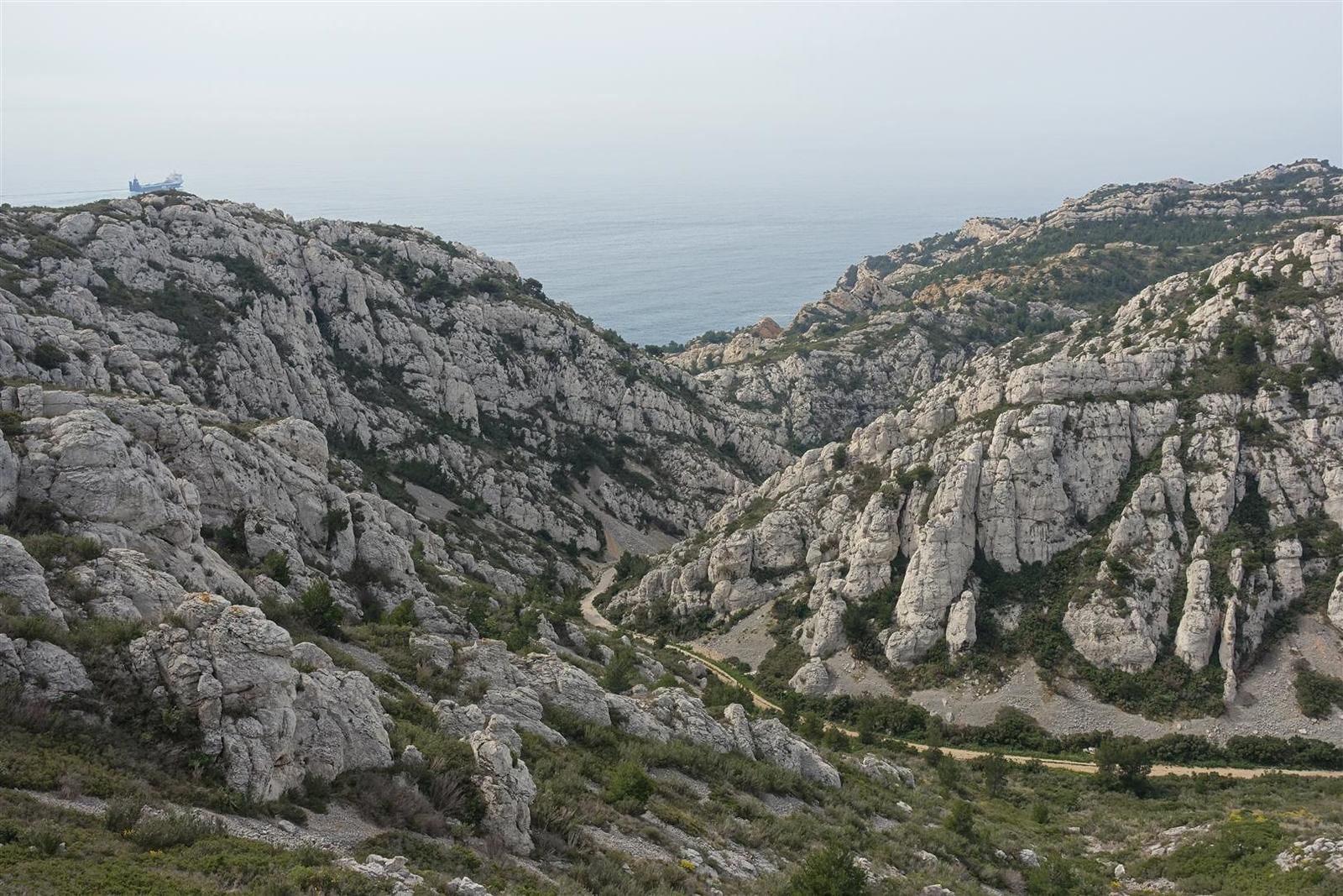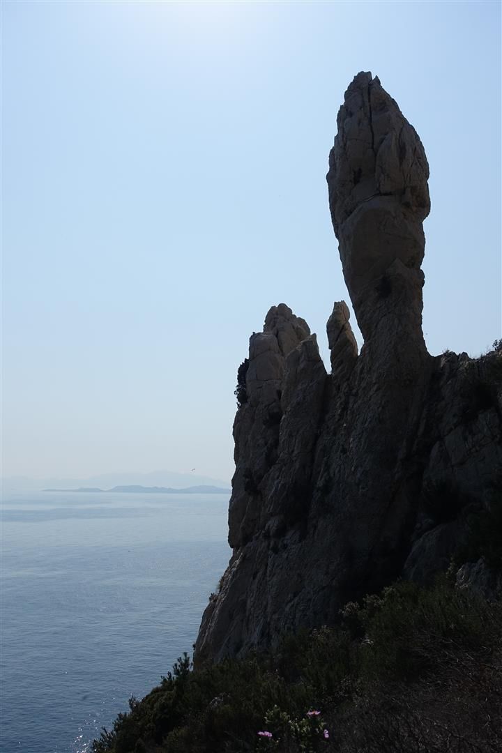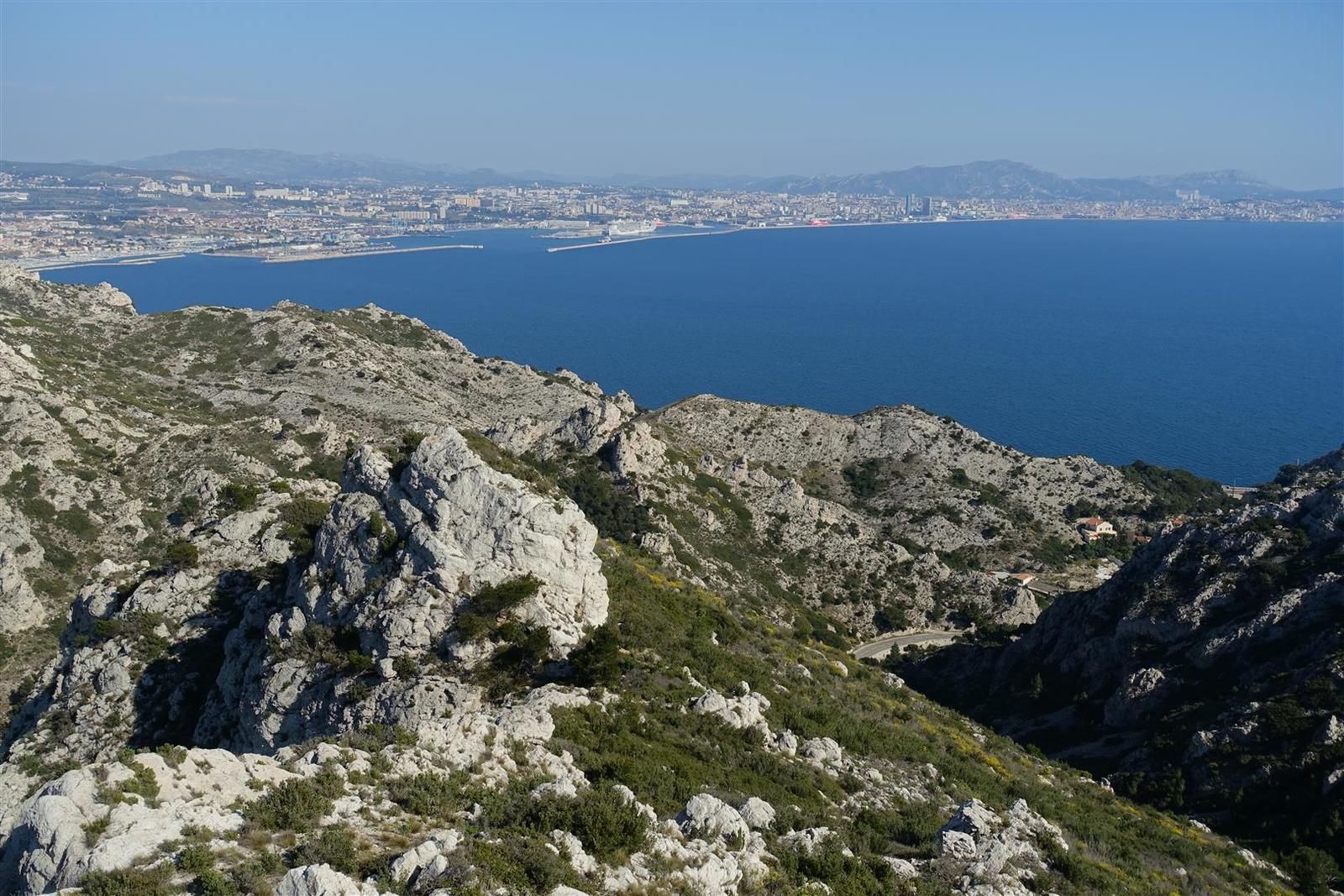 tentative sur la crête rocheuse évidente depuis la D568 au niveau du vallon du Gipier, crête qui descend du point coté 213 vers l'est. Le rocher déliquescent ne permettra pas le parcours escompté, on profitera quand même de beaux points de vue sur la rade marseillaise