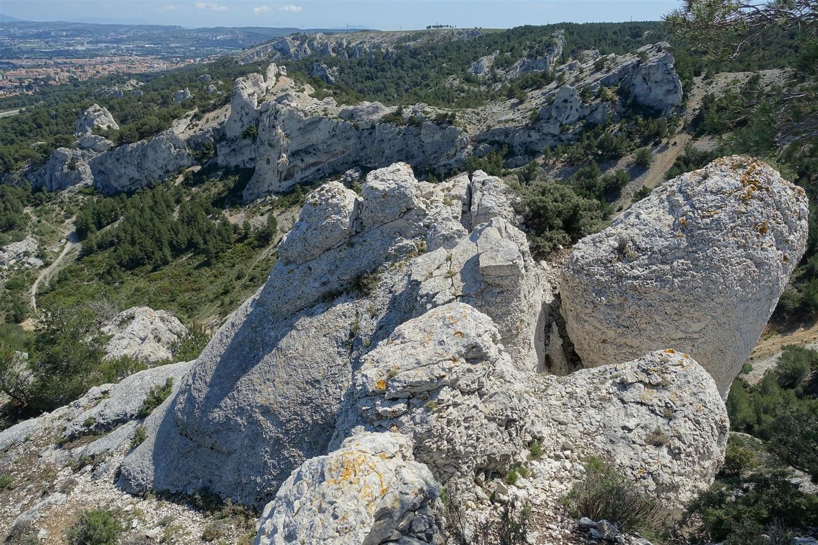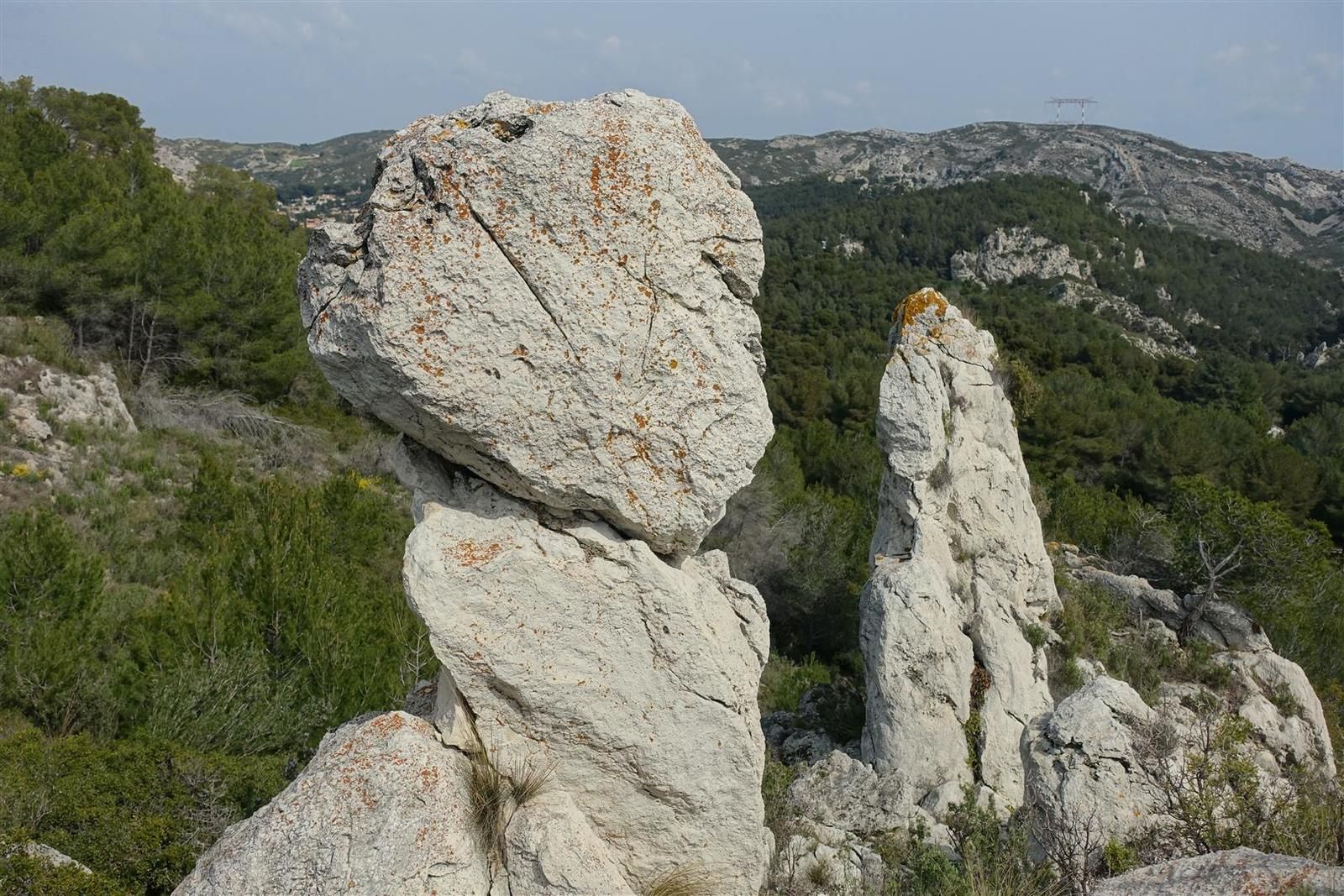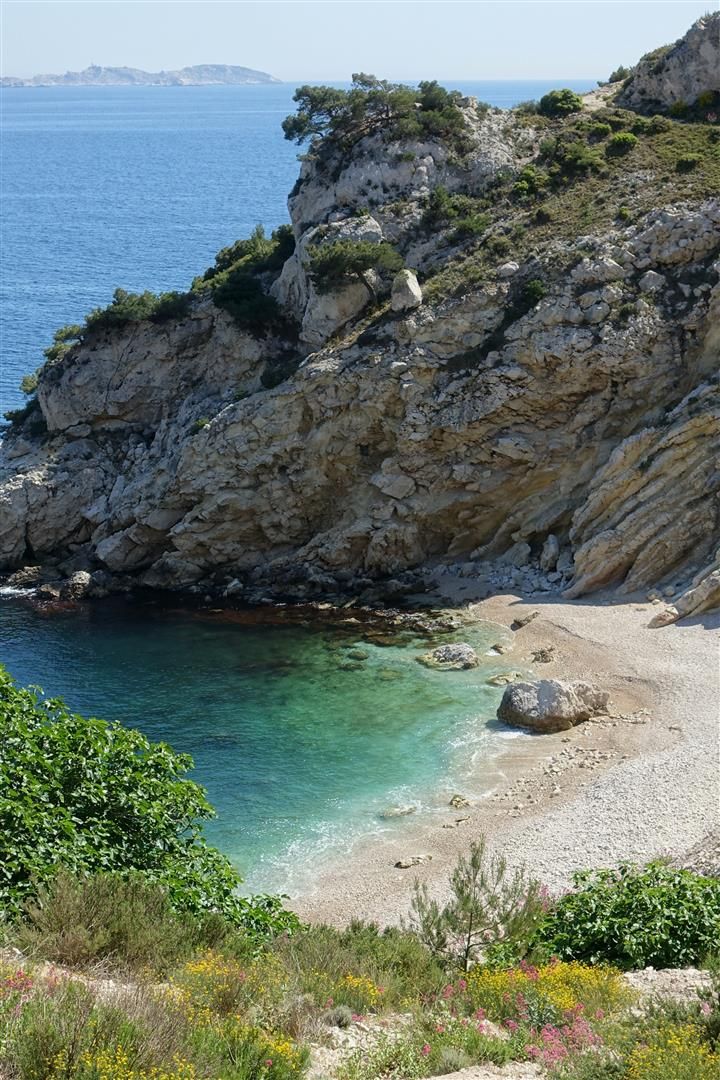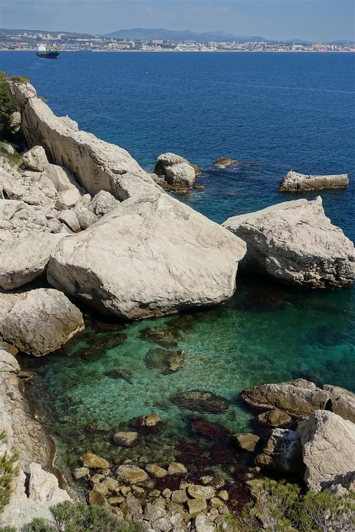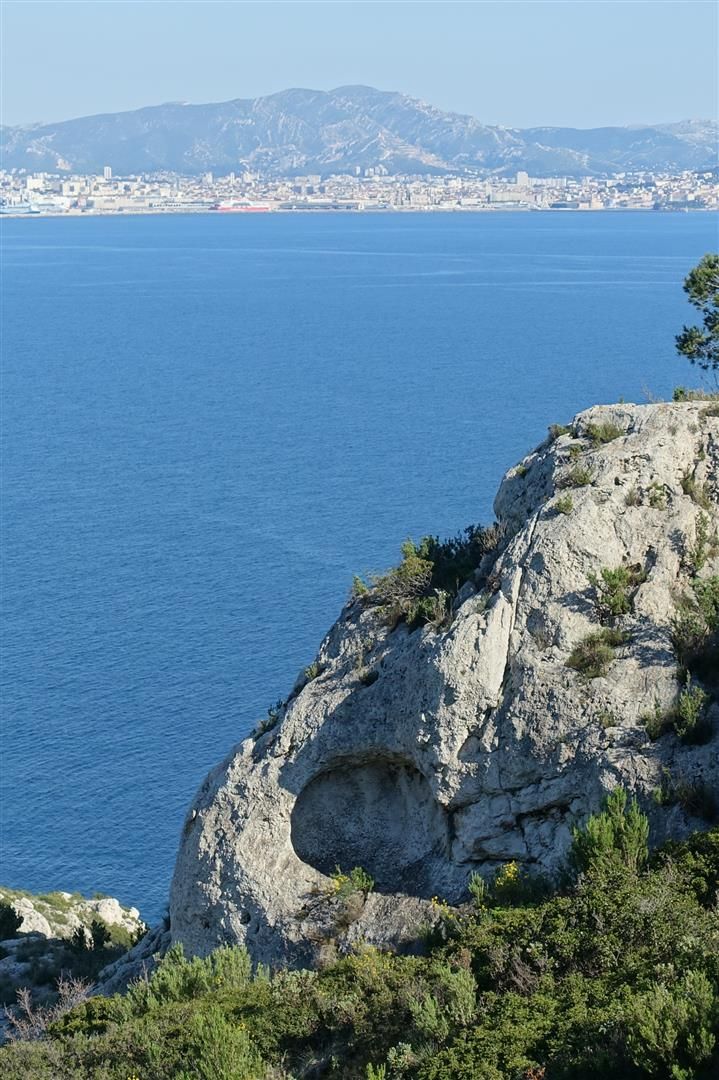 tentative sur la crête rocheuse évidente depuis la D568 au niveau du vallon du Gipier, crête qui descend du point coté 213 vers l'est. Le rocher déliquescent ne permettra pas le parcours escompté, on profitera quand même de beaux points de vue sur la rade marseillaise