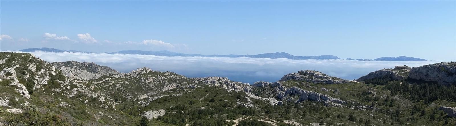 mer de nuages au-dessus de la calanque de l'Erevine, le lendemain à nouveau les couleurs caribéennes